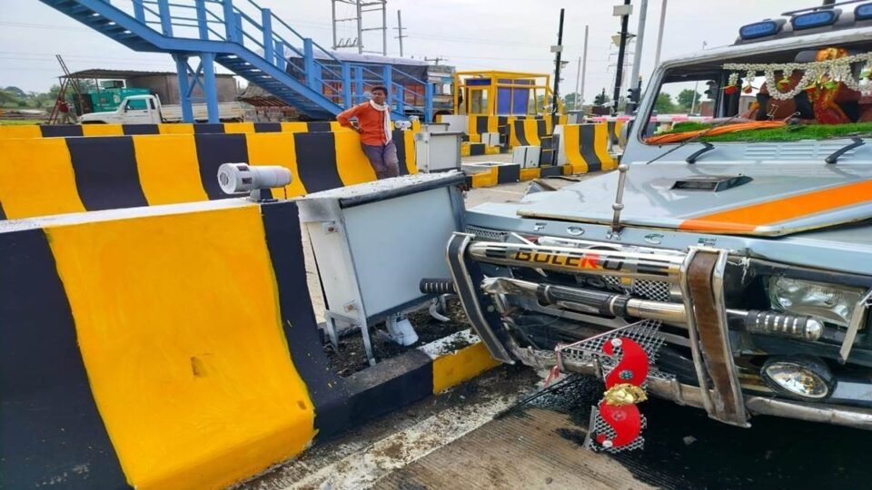 रविवार सुबह पांच बजे वाहन क्रमांक एमएच 38-7197 का चालक तेज गति से व लापरवाही पूर्वक वाहन चलाकर लाया और टोल प्लाजा को टक्कर मार दी।