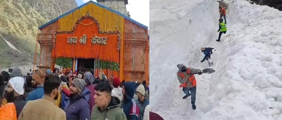 केदारनाथ यात्रा से पहले DDMA द्वारा यात्रा पैदल रास्तों से बर्फ हटाने ने लगे है श्रमिक।