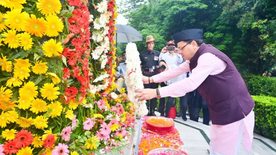 उत्तराखंड के मुख्यमंत्री पुष्कर सिंह धामी ने कारगिल विजय दिवस (शौर्य दिवस) पर आयोजित कार्यक्रम में शहीद स्मारक पर शहीदों को श्रद्धांजलि अर्पित की. मुख्यमंत्री ने इस दौरान कारगिल के शहीदों के परिवारजनों को भी सम्मानित किया और 4 घोषणाएं की. मुख्यमंत्री ने कहा कि कारगिल युद्ध में मां भारती की रक्षा के लिये हमारे वीर जवानों ने पराक्रम और अदम्य साहस का परिचय दिया. इस अवसर पर सैनिक कल्याण मंत्री गणेश जोशी, कैबिनेट मंत्री प्रेमचन्द अग्रवाल, विधायक सविता कपूर, बृज भूषण गैरोला और निवर्तमान मेयर सुनील उनियाल गामा ने भी शहीद स्मारक पर कारगिल शहीदों को श्रद्धांजलि दी.