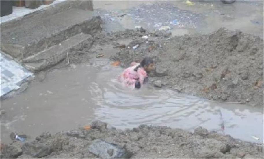 इंदौर। मध्य प्रदेश के इंदौर जिले में नगर निगम के पीएचई विभाग के अफसरों की लापरवाही शहर की जनता के लिए जानलेवा साबित हो रही है। नर्मदा लाइन सुधारने तथा नई लाइन डालने के लिए पीएचई ने शहर भर में गड्ढे खोद रखे हैं, लेकिन काम पूरा होने के बाद भी कई जगह इन्हें खुला ही छोड़ दिया गया। ऐसे में बारिश के कारण इन गड्ढों में पानी भर गया, जिससे लोग हादसे का शिकार हो रहे हैं।नगर निगम द्वारा खोदे गए गड्ढे में भरे पानी में एक मासूम डूबते-डूबते बची। दिल दहलाने वाला एक वीडियो आया है जो कि वार्ड-1 अम्मार नगर का बताया जा रहा है।