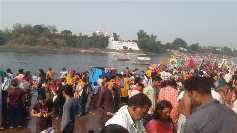 दो लाख से अधिक श्रद्धालुओं के नर्मदा स्नान का अनुमान है