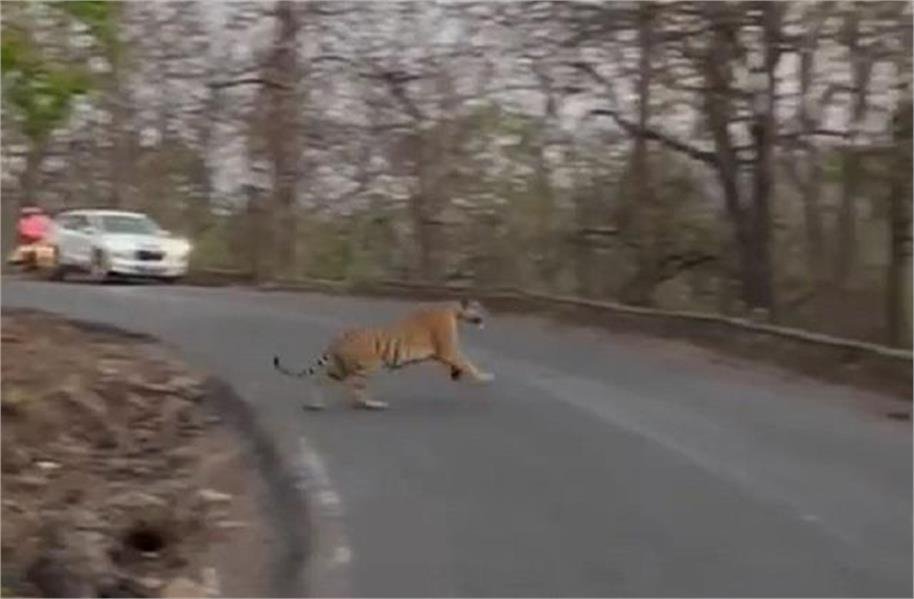 आज पन्ना टाइगर रिजर्व के मडला गेट के पास नेशनल हाइवे- 39 मडला घाटी में राहगीरों को बाघ के साथ भालू भी दिखा, यह बाघ और भालू ने लंबे समय तक राहगीरों को अपने दीदार कराए। वहीं पन्ना की ओर आ रही पन्ना की राजकुमारी कृष्णा कुमारी ने बाघ और भालू को देखा, और यह सड़क क्रॉस करते हुए बाघ का रोमांचित करने वाला वीडियो सोशल मीडिया में डाला, जो जमकर वायरल हो रहा है। उन्होंने बताया कि नेशनल हाइवे-39 मडला घाटी में कई राहगीरों ने रुककर बाघ को देखा, साथ ही भालू को भी रोड के करीब ही देखा, यह एक रोमांचित और आकर्षक पल रहा।