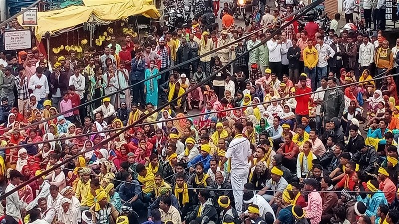 लगभग दो घंटे तक दीन दयाल तिराहे पर बैठे आदिवासी समाज ने शुक्रवार को थाने में अपने साथी की रिहाई की मांग यह कहते हुए की थी कि आखिर किस अपराध में उस पर मामला बनाया गया आदिवासी समाज के लोग धन्नू धुर्वे की प्रशासन द्वारा की गई गिरफ्तारी को असंवैधानिक बता कर प्रशासन से उसे छुड़ाने की मांग कर रहे थे।